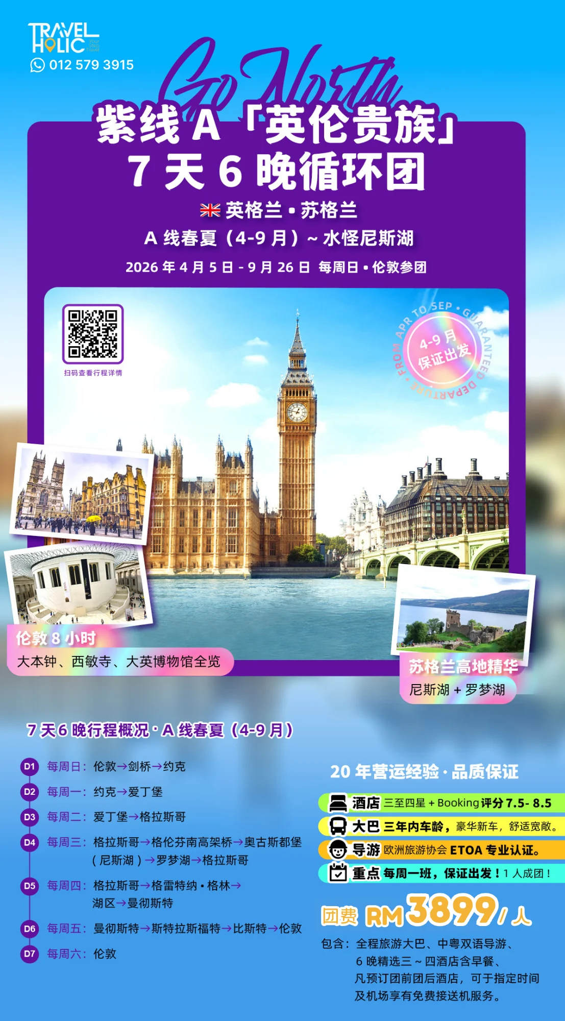 计划体验经典英伦之旅?这条线路带您从伦敦历史地标到苏格兰神秘高地,一次尽览都市风华与湖堡传奇。